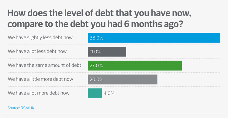 Of the 300 business leaders, 49% said they have less debt now compared to six months ago. However, 24% currently have more. In comparison, our 2023 survey found that 56% had more debt at the time of answering than they did six months prior. This reflects a broader trend in the UK economy, whereby businesses, particularly smaller ones, are focusing on paying off their debt as a primary use of their cash flow. This is a mixed blessing – for those that were overleveraged, this can put them in a stronger position, but for others it means that they’re putting off investment for the future.