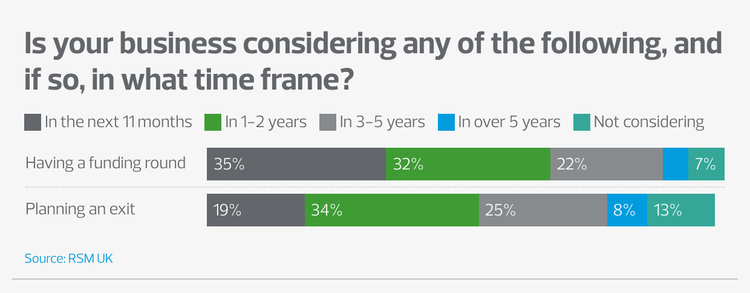 The reduction in levels of debt indicates a focus for businesses to try to pay off debt rather than taking on new borrowing commitments. There appears to be optimism for our respondents with many having plans on the horizon for a funding round or exit. This might be a result of the certainty that comes with interest rates levelling and confidence being restored in both lenders and investors. However, weak economic growth in the UK and affordability challenges could offset that positive sentiment. All companies that want to raise funds should expect to answer tough questions about their business and future.